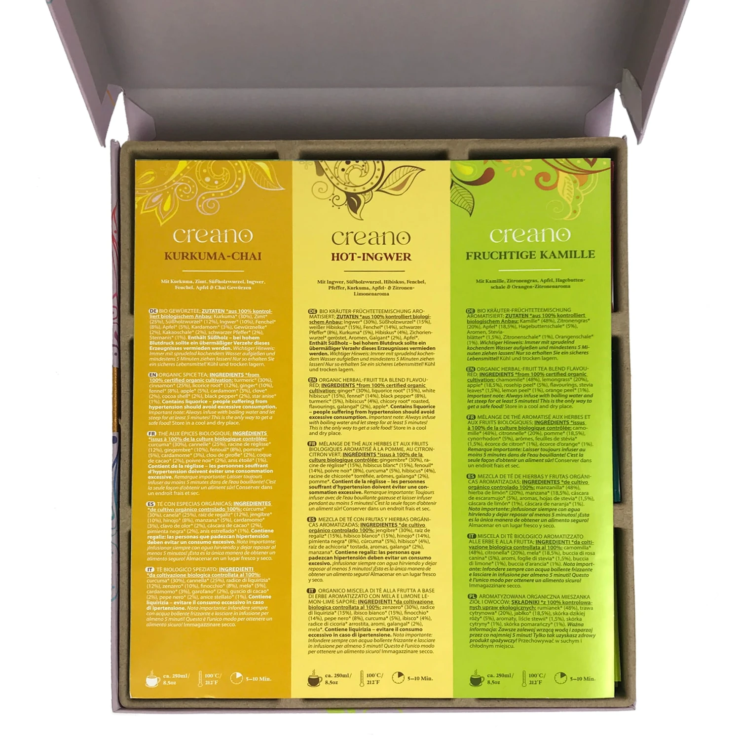 2x GESCHENK-BOX „Kräuter-Früchte-Gewürz-TEE“ BIO 45 Teebeutel in 9 Sorten