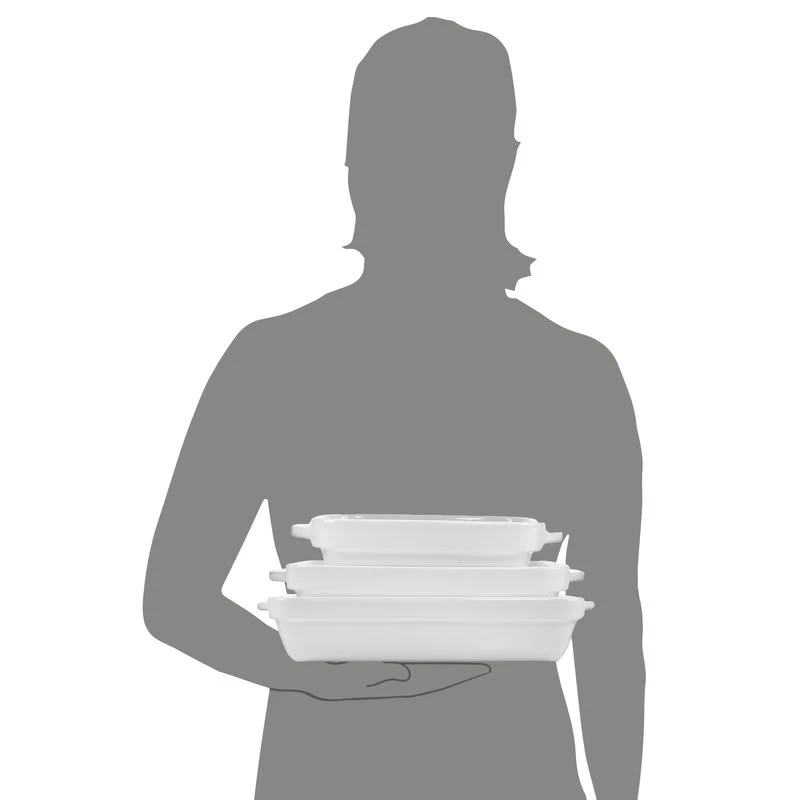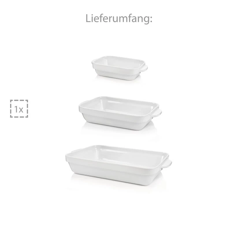 Mit diesem Backform-Set erwerben Sie einen wahren Alleskönner. Für jede Situation haben Sie hier die passende Größe, zudem garantiert das Weiß ein stilvolles Anrichten, bei dem Ihre Speisen in den Vordergrund gebracht werden und Ihr Esstisch ein harmonisches Gesamtbild verspricht.