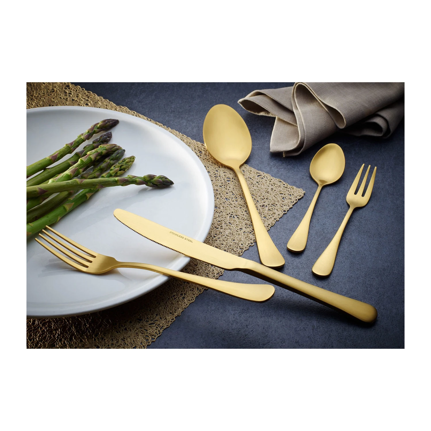 Das Tafelbesteck wird in einem Stonewashed-Verfahren behandelt womit eine Vintage-Optik im Landhausstil erzeugt wird