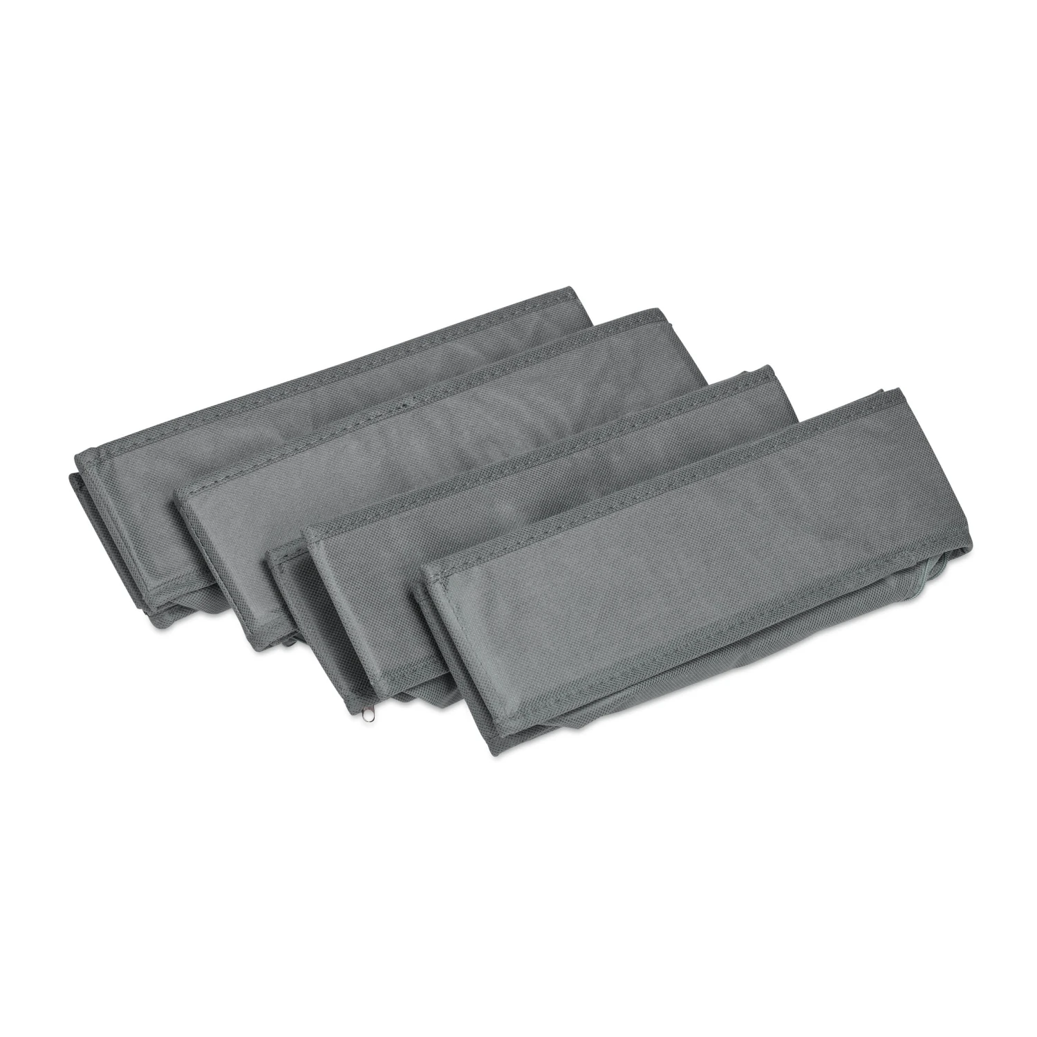 Mit diesen Stoffboxen bringst Du Ordnung ins Wäschechaos und sortierst Socken, BHs und Unterhosen übersichtlich. Ohne langes Kramen in der Schublade hast du das richtige Wäschestück dank der 4-teiligen Unterwäsche Aufbewahrung in Zukunft jederzeit schnell zur Hand. Neben Unterwäsche eignen sich die Kleiderschrank Organizer auch für Krawatten und Tücher oder für Babykleidung neben dem Wickeltisch. Bei Nichtgebrauch können die Schubladen Sortierer platzsparend gefaltet werden.