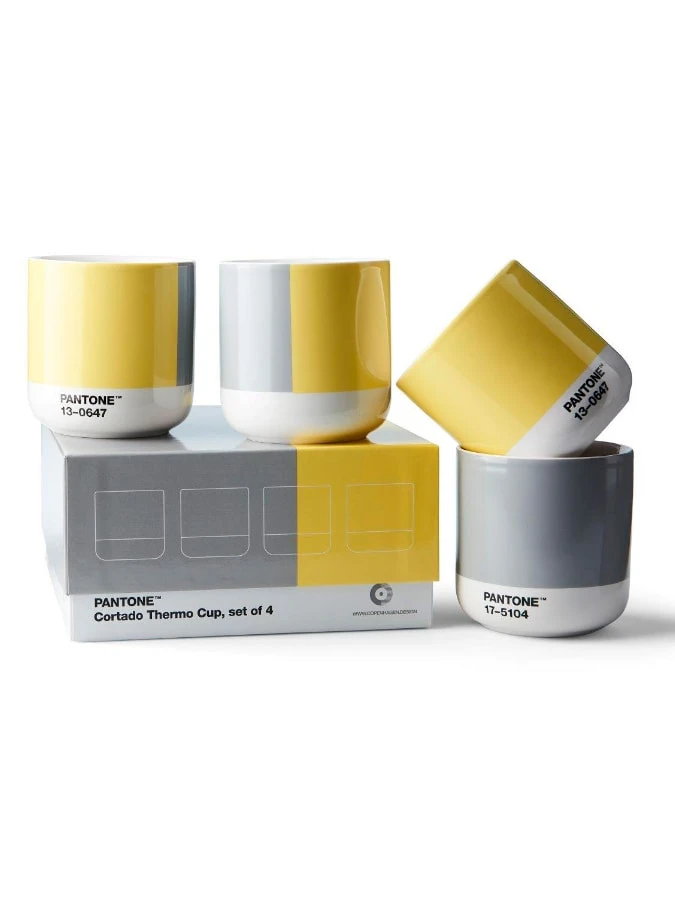 4er-Set: Isolierbecher „Cortado“ In Grau/ Gelb – 170 Ml