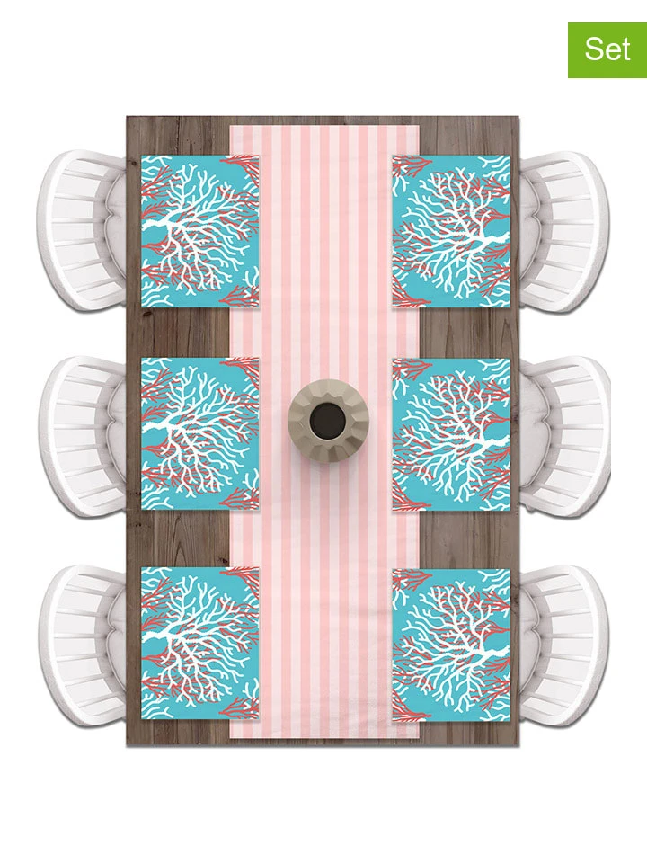 7tlg. Set: Tischläufer Und Tischsets In Blau