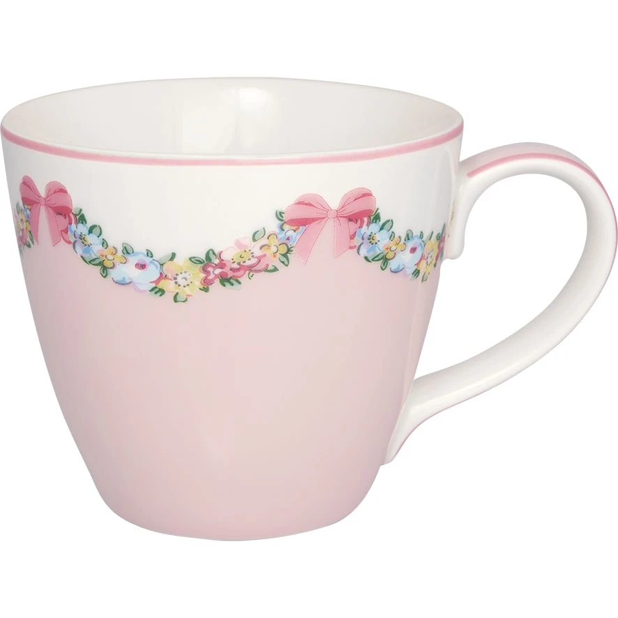 Mit den attraktiven Greengate Tassen Maya gelingt Dir der geruhsame Start in den Tag mühelos. Mit bunten Blumenketten, die durch kleine, rosa Schleifchen verbunden sind, lenkt Dich der zartrosa Greengate Becher vom Stress des Alltags ab und lädt zum Chillen ein.