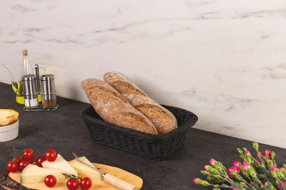Kunststoff Brotkorb der Marke Kesper hat nicht gleich, weil er durch seine geschmackvolle Präsentation und praktische Qualitäten besticht. Dieser schwarze Brotkorb wird jeden Tisch perfekt dekorieren und die festliche Natur des Geschirrs betonen, während er immer sauber und sauber aussieht. Das Material, aus dem der Brotkorb hergestellt wird, ist sehr langlebig und hygienisch. Sie können einen so eleganten Küchenkorb leicht reinigen, auch in den für geflochtene Accessoires typischen Aussparungen, so dass Ihr Essen immer hygienisch und sicher für die Gesundheit der Offenbarer ist. Darüber hinaus sind Kunststoff-Lebensmittelbehälter extrem widerstandsfähig gegen Zerstörung, verlieren keine Farbe und unterliegen keiner Verformung. Darüber hinaus sind geflochtene Körbe ideal nicht nur für Brotkörbe, sondern auch für andere Köstlichkeiten wie Obst oder Süßigkeiten. Es ist ein sehr vielseitiger Behälter für Brot und Lebensmittel, also sollten Sie Ihre Küche mit einem solchen Plastikkorb ausstatten und die Erfrischungen ästhetisch und gesund servieren.