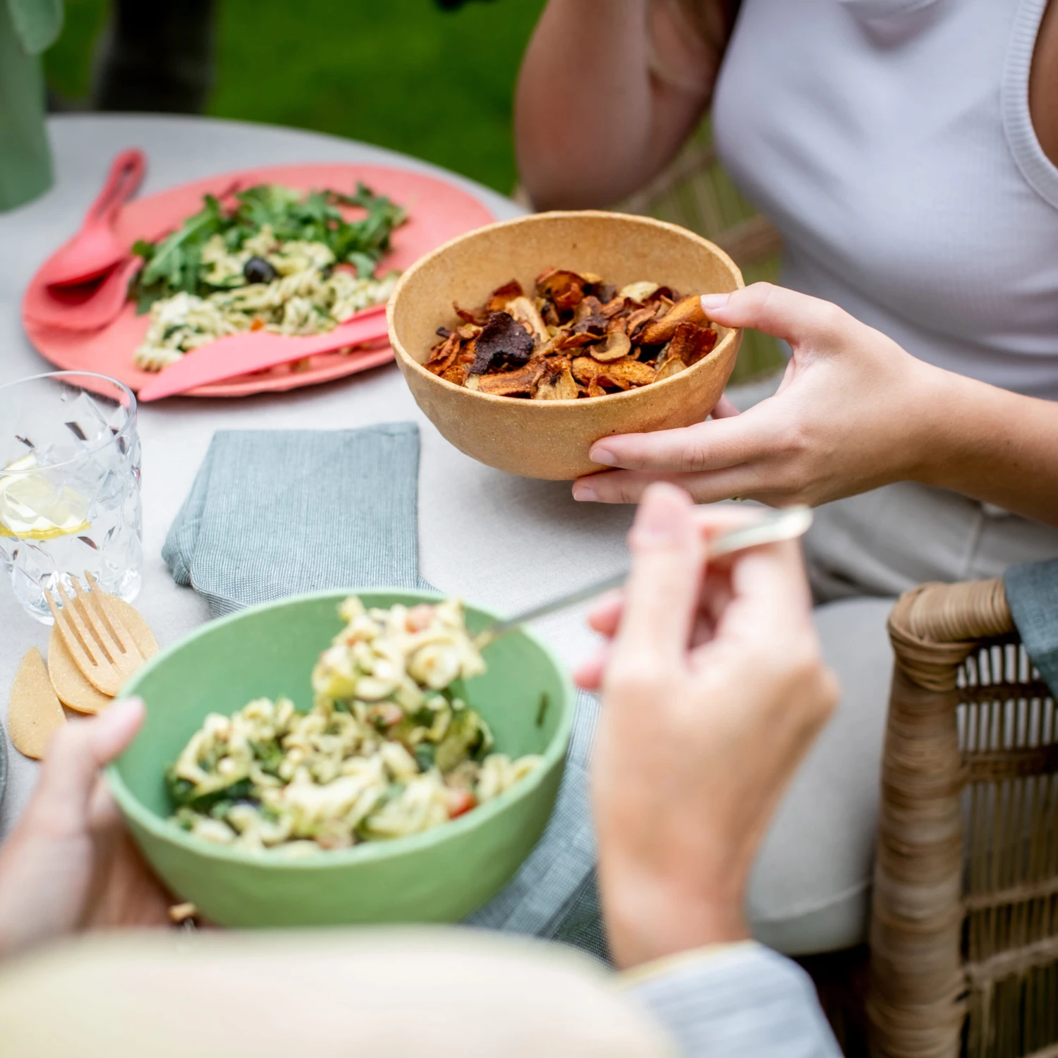 Genau die richtige Größe für die angesagten Bowl-Rezepte! Ob Smoothie-, Veggie- oder Buddha-Bowl, in dieser Schale lassen sich die neuen Rezeptideen ansprechend anrichten. Die Schale präsentiert sich darüber hinaus äußerst universell und macht auch für Obst, Salate, Nachtisch oder Suppen was her. Das Material bleibt lange schön und ist natürlich spülmaschinenfest. 4er-Set •formschöne Schale•hochaktuelles Facettendesign•schwere Qualität•sicherer Stand •stapelbar •ideales Outdoor-Produkt•100% CO2-neutral ORGANIC BIO-CIRCULAR