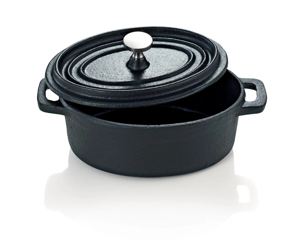 Hinweis: Da die Töpfe und Pfannen aus Gusseisen sind, kannst Du sie auch auf Induktionskochfeldern verwenden.