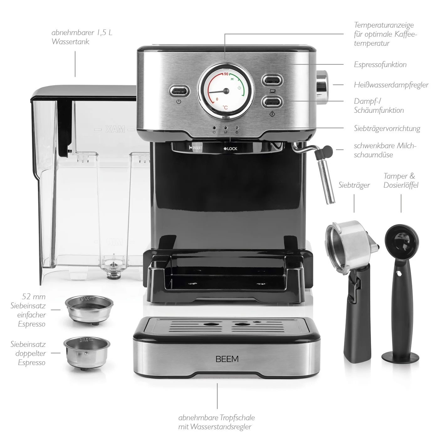 Gönn´ Dir diesen Genuss jetzt jeden Tag zu Hause. Ob aromatischer Espresso, köstlicher Cappuccino oder Latte Macchiato – mit der BEEM ESPRESSO-SELECT können all diese Kaffee-Variationen jetzt ganz einfach zubereitet werden. Dank der warmen Oberseite der Maschine lassen sich die Espressotassen sogar vorwärmen – für ein optimales Genusserlebnis!