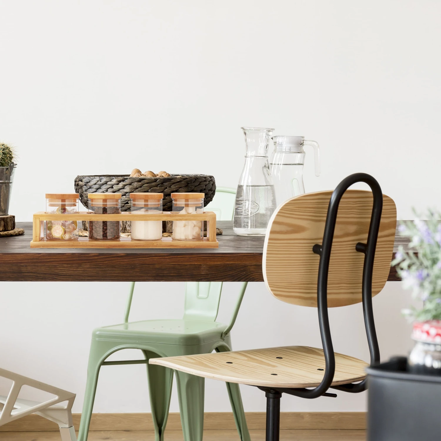 Dieses 4er Gewürzdosen Set mit praktischem Bambushalter eignet sich wunderbar für die Küche oder den gedeckten Tisch. Ob für klassische Gewürze zum Abschmecken von Speisen, für Zucker an der Kaffee- und Teestation oder zur Aufbewahrung von Nudeln, Bonbons und mehr – die Gewürzgläser können äußerst vielfältig zum Einsatz kommen. Dank des luftdichten Verschlusses bleiben Deine Lebensmittel lange frisch. Das schlichte Design aus Bambus und Glas verleiht Deinem Zuhause einen natürlichen Touch.