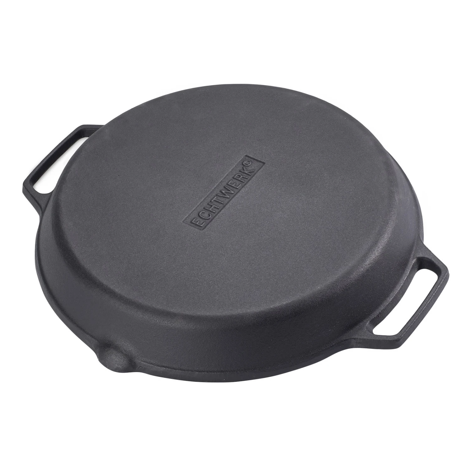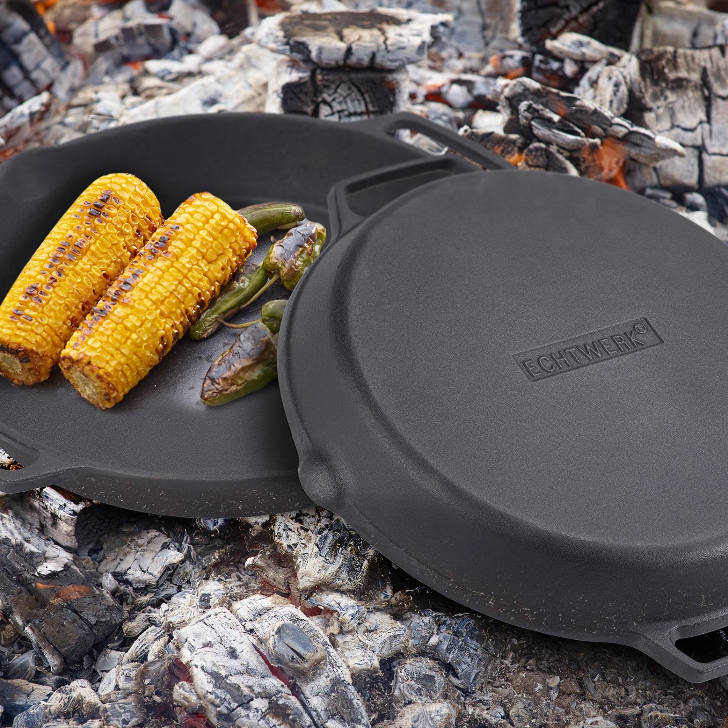 Dank des schweren Gusseisens lässt sich die Pfanne sicher und stabil auf jedem Grill positionieren. Die Grillpfanne reguliert dank Gusseisen ungleichmäßige Hitze und sorgt dafür, dass Ihr Gericht bei einer gleichmäßigen Temperatur zubereitet wird. Ein abschraubbarer Griff macht die Pfanne Backofenfest.
