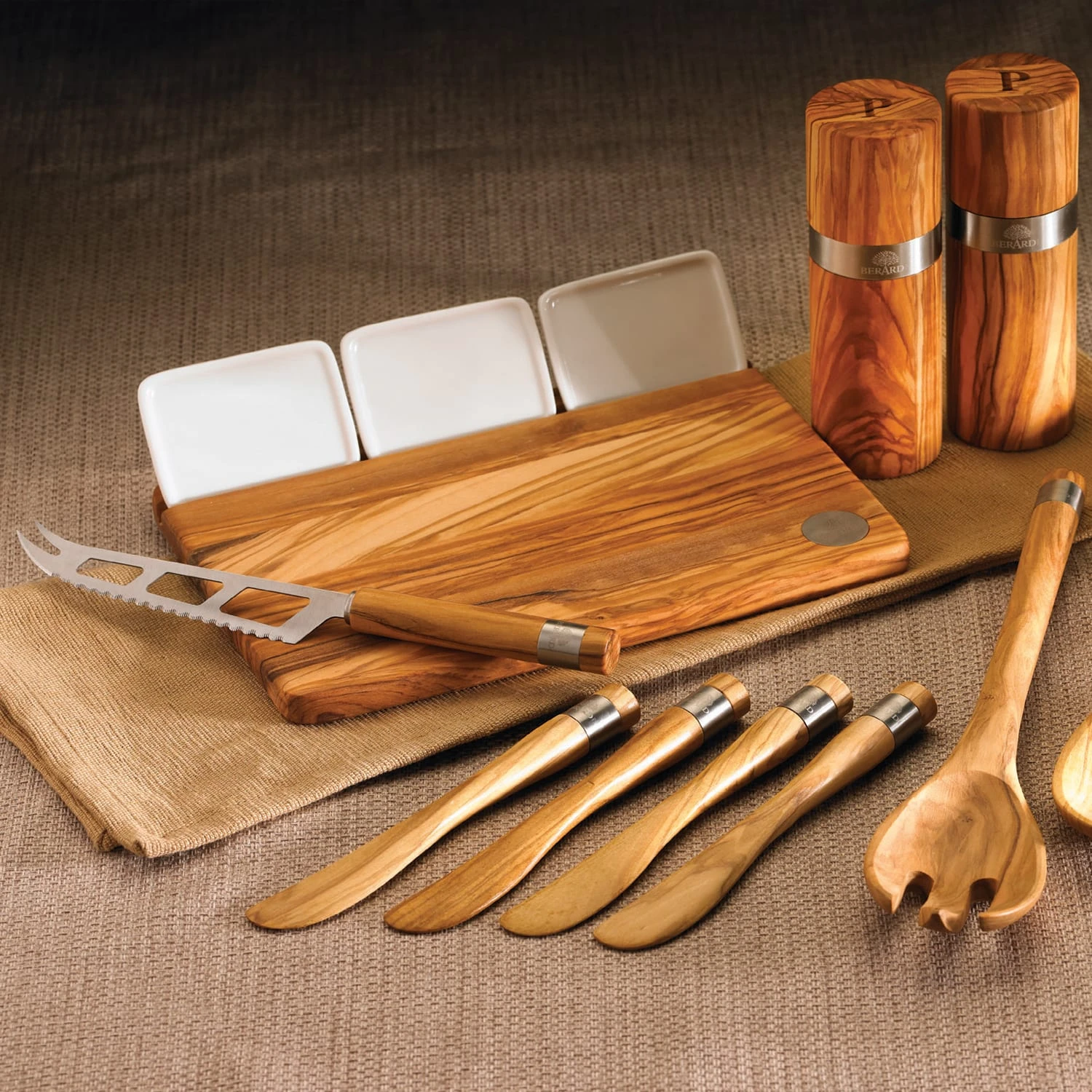 Hochwertiges Käsemesser der Acero Collection, mit gezackter Klinge und formschönem Griff aus Olivenholz mit Edelstahlband.