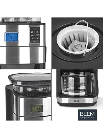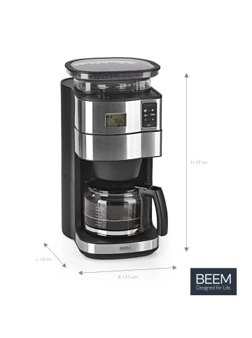 Dank des integrierten 24-Stunden-Timers startet die BEEM FRESH-AROMA-PERFECT II zum gewünschten Zeitpunkt mit der Zubereitung und lockt Sie morgens mit dem Duft von frisch gebrühtem Kaffee aus dem Bett. Bis zu 10 Tassen Kaffee können mit einem Brühvorgang zubereitet und dank der integrierten Warmhalteplatte in Ruhe genossen werden. Frischer und aromatischer kann Kaffee kaum zubereitet werden! Für ganze Bohnen und gemahlenem Kaffee. Kaffeebohnenfach mit Frischeschutzdeckel für bis zu 180 g Bohnen.
