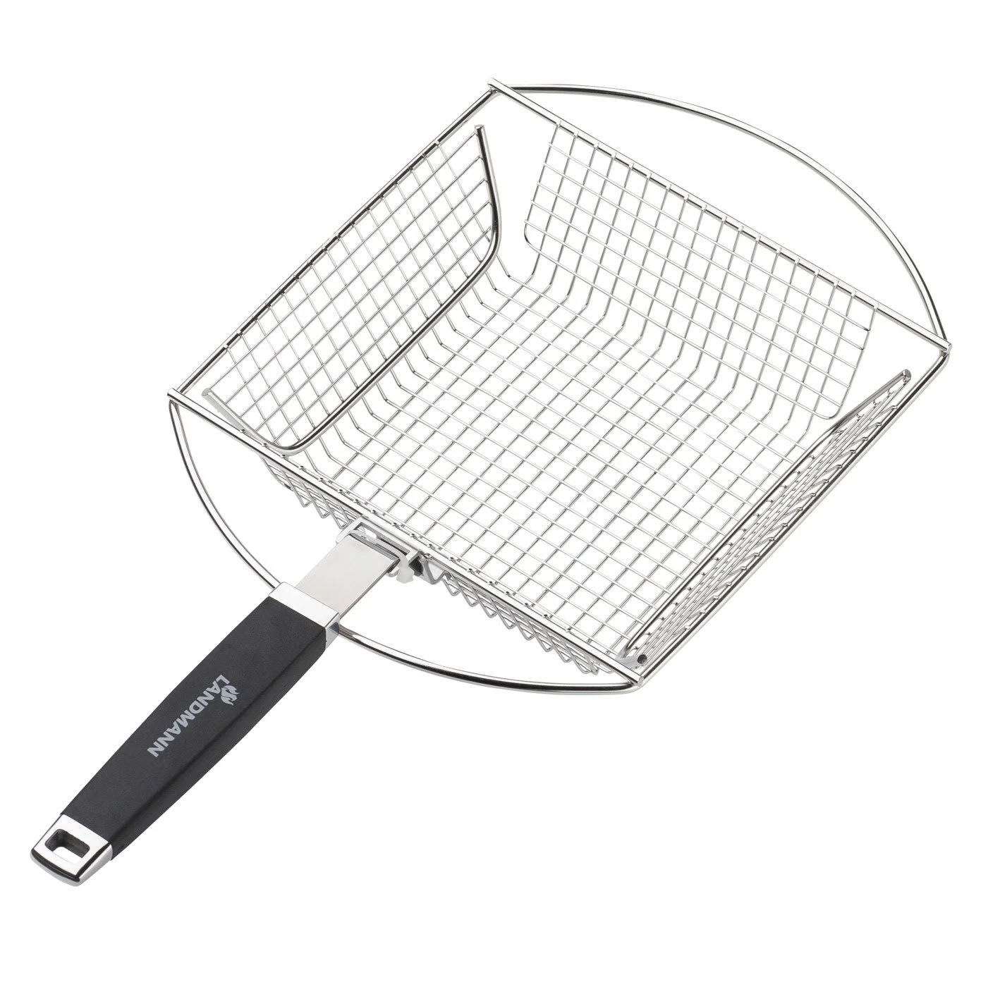 Kleinstückige Speisen und knackiges Gemüse werden mit dem LANDMANN Pure Gemüsekorb aus Edelstahl simpel über der direkten Flamme gegrillt.