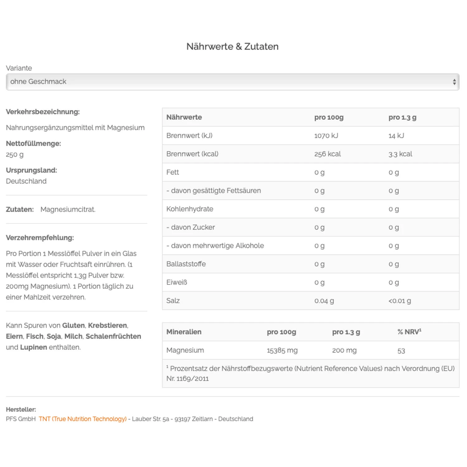 TNT Magnesium Citrat Pulver – Rohstoffinformationen