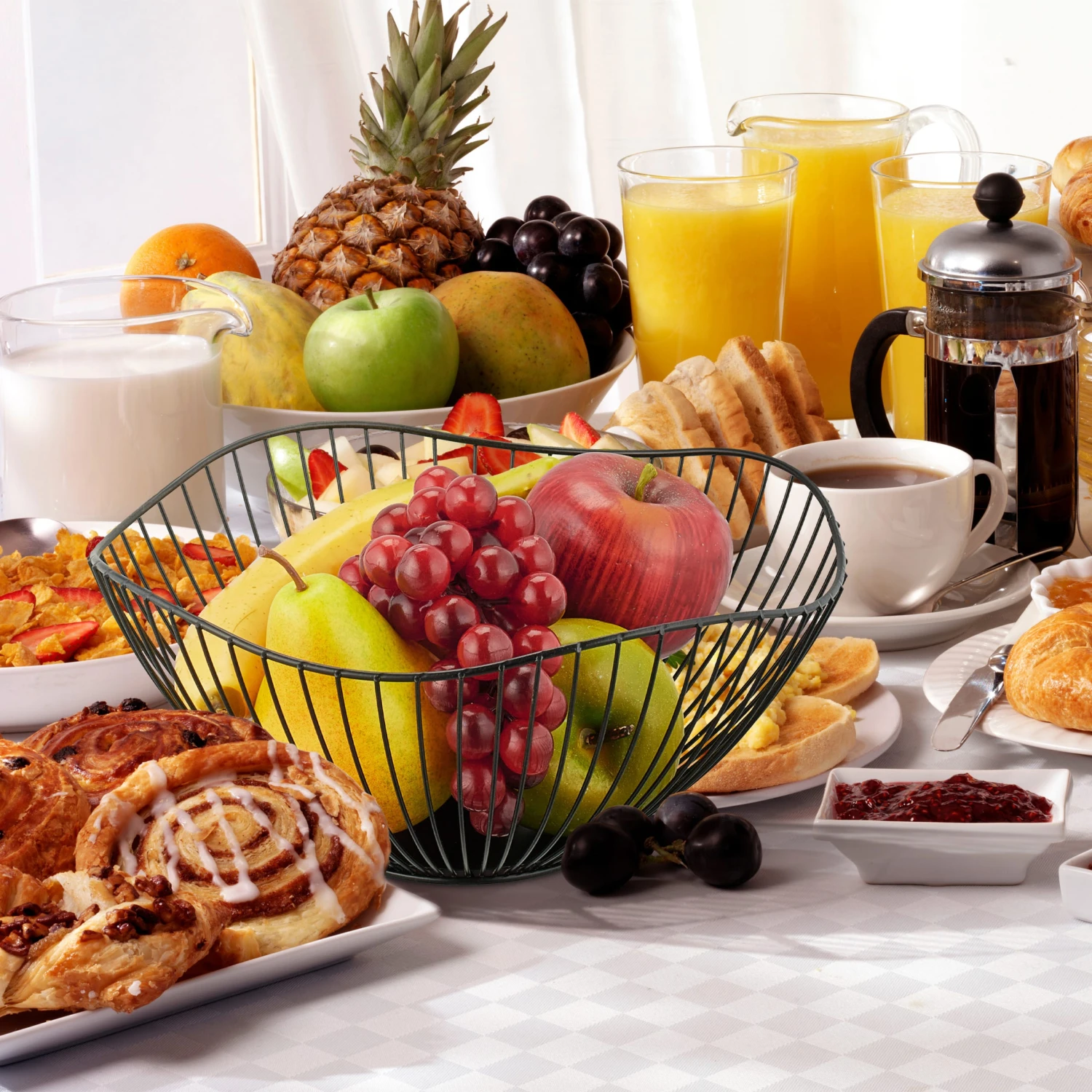 Das Auge isst mit: Dank dieses hochwertigen Obstkorbes schmecken knackige Äpfel, Bananen und anderes Obst gleich noch viel besser. Der große Obstteller in Gitter-Optik ist mit seinem matt-schwarzen, geometrischen Design ein echter Hingucker in Deiner Küche, der sich gekonnt in jede Einrichtung einfügt. Auch auf dem Buffet- oder Esstisch präsentierst Du Deinen Gästen saftiges Obst so besonders ansprechend. Dank der luftigen, offenen Form der Gitterschale bleiben Früchte und Gemüse länger frisch.