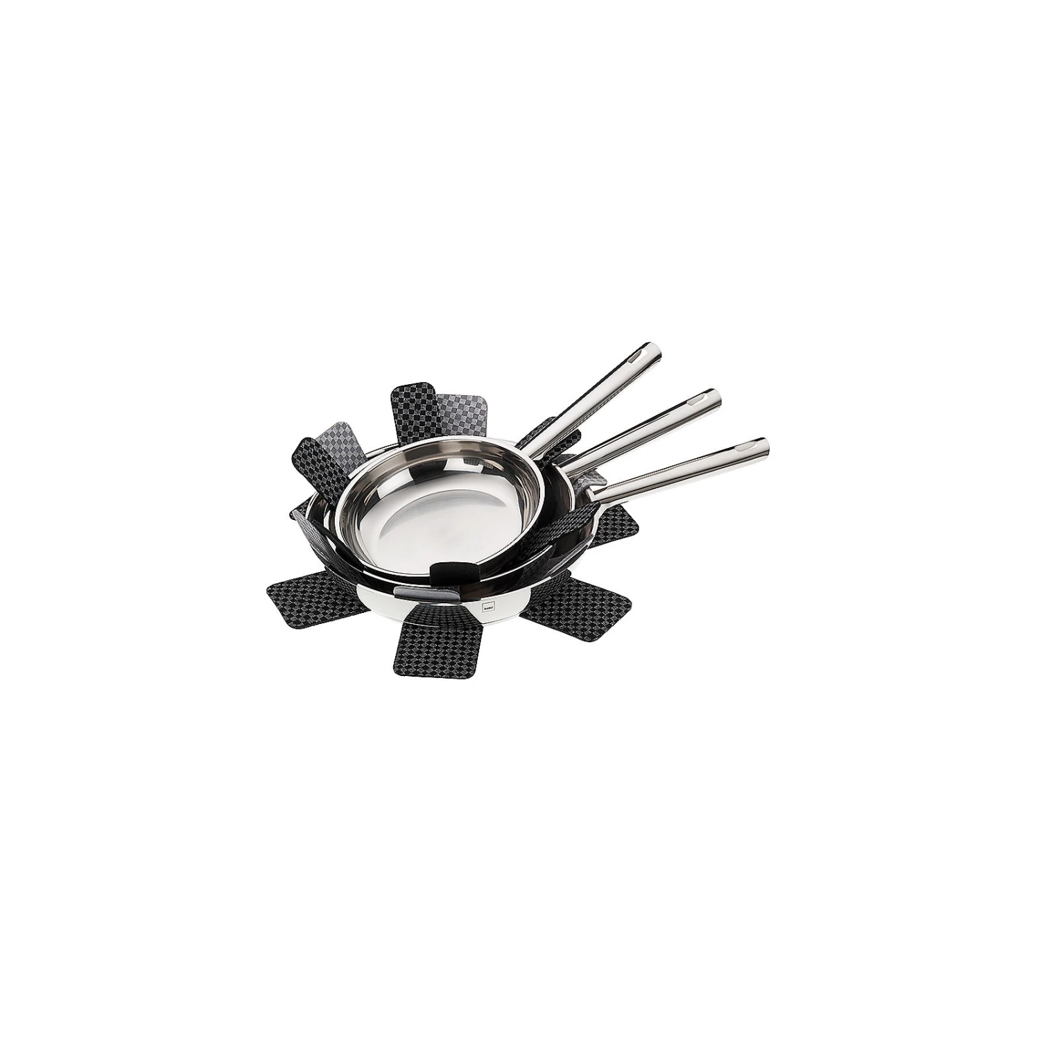 Das sichere Stapeln Ihrer Pfannen mit dem dreiteiligen Pfannenschutzset Amparo. Durch das stabile Filz werden Ihre Pfannen beim Stapeln vor unangenehmen Kratzern geschützt. Das Set beinhaltet drei Pfannenschoner in drei verschiedenen Farbtönen (1 x Dunkelgrau und 1x Hellgrau, 1x Sommerblau). Alle drei haben eine Dicke von 3 mm.