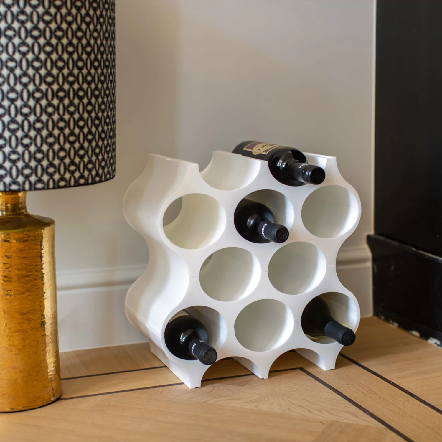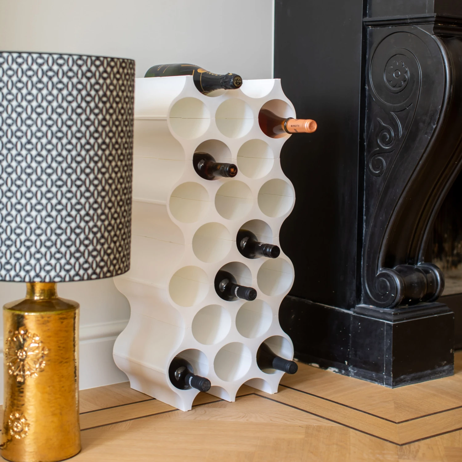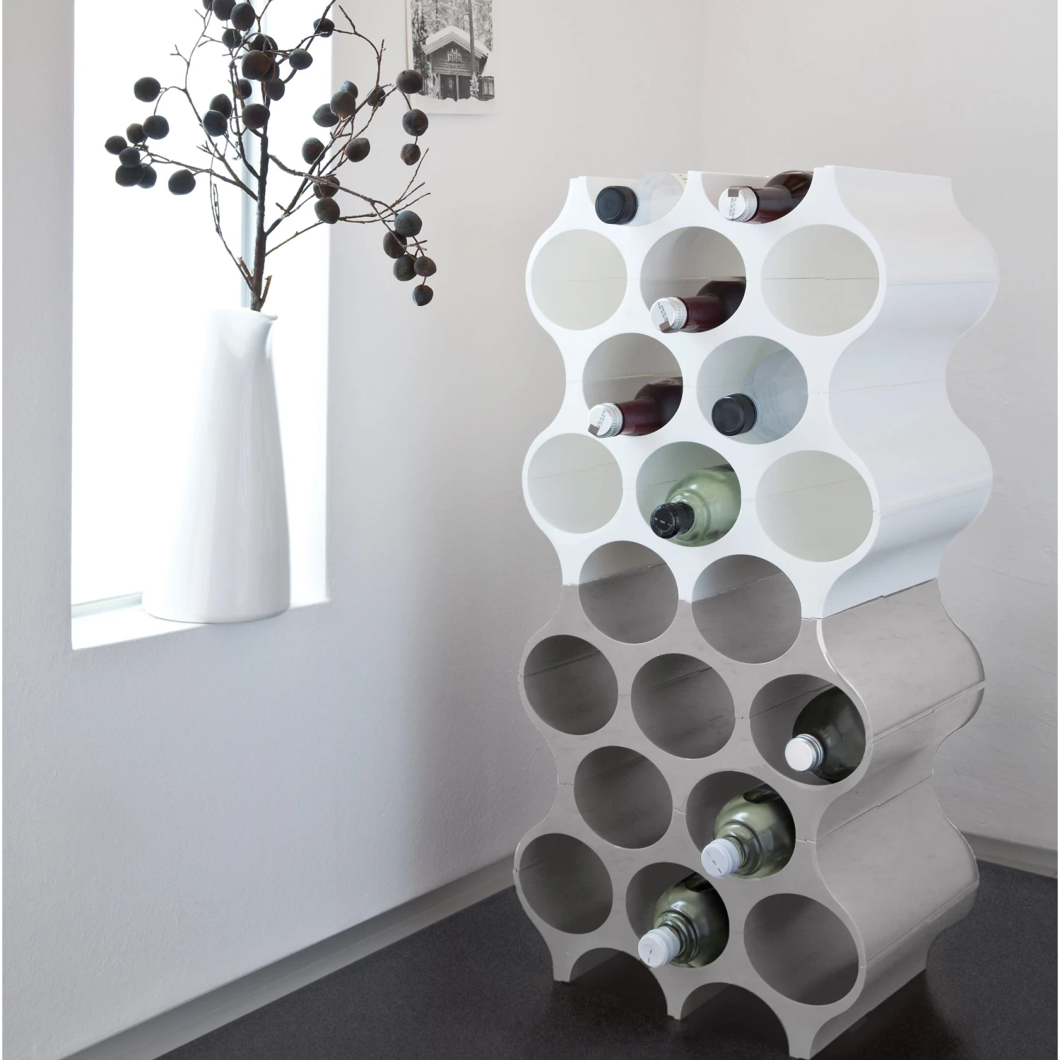 Immer schön flüssig bleiben: SET-UP ist ein Organisationstalent und Ordnungsmöbel für Wein-, Wasser- und Limonadenflaschen. Die einzelnen Module bieten aufgrund des Materials und ihrer Wabenform eine überdurchschnittlich hohe Stabilität. Trotzdem lassen sie sich so einfach wie ein Baukasten zusammensetzen und nebeneinander kombinieren, aus- bzw. umbauen. Dabei ist SET-UP so elegant, dass es sich nicht im Vorratskeller verstecken muss, sondern auch in der Küche sowie an Wohn- oder Esszimmerwänden zum funktionalen Blickfang werden darf. •modulares System•für Flaschen bis 9 cm Durchmesser•beliebig erweiterbar•stabil•100% CO2-neutral KOZIOL ORGANIC