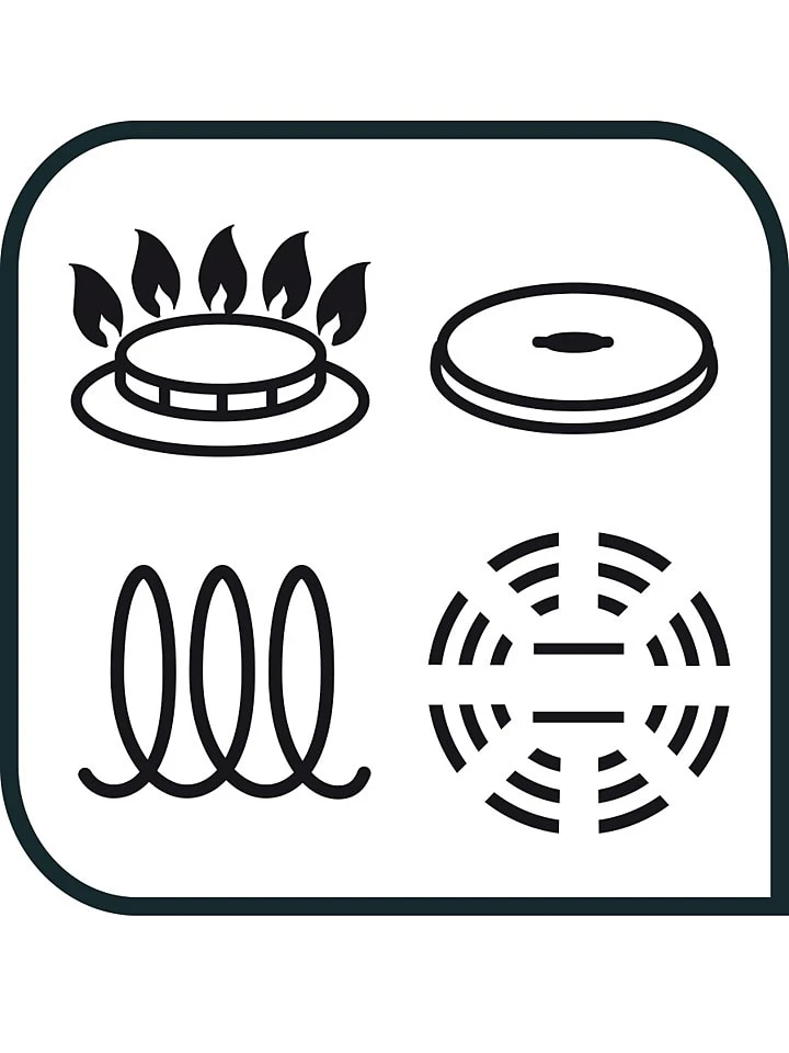 – kompatible Herdarten: Elektro, Ceran (Glaskeramik), Gas, Halogen, Induktion